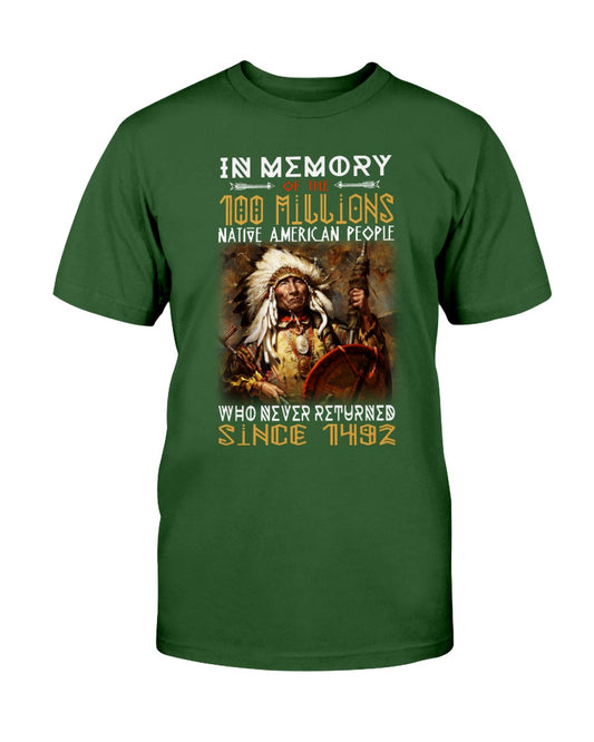 In Memory Of The 100 Millions Native American People Who Never Returned Since 1492 T-Shirt