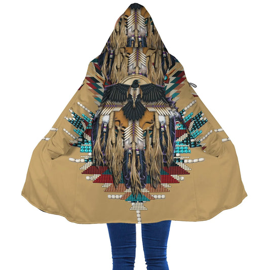 Native Eagle Pattern Horn Button Long Fleece Windbreaker