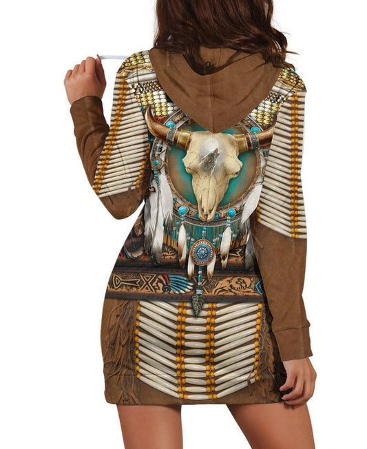 Brown Native Buffalo Skull Hoodie Dress