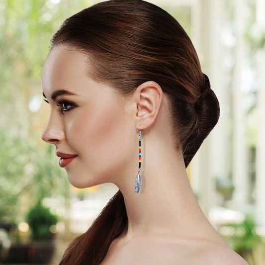 SALE 50% OFF - Black Stick with Metal Feather Beaded Handmade Earrings For Women