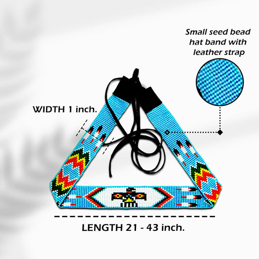 SALE 50% OFF - Blue White Red Yellow Seed Beaded Thunderbird Beadwork Cowboy Hat Band Belt IBL
