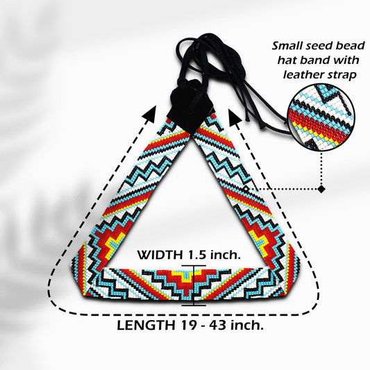 SALE 50% OFF -Handmade beaded Geometric White Multi-Colored loom Cowboy style Hatband IBL