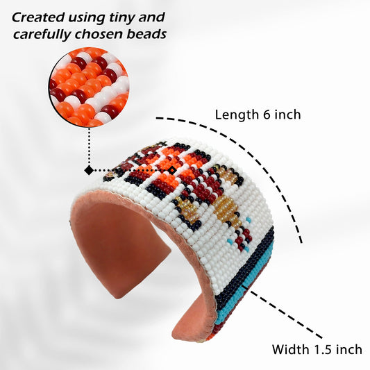 SALE 50% OFF - White Red Turtle Hard Cuff Beaded Handmade Bracelet