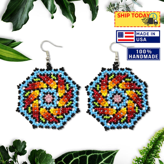 SALE 50% OFF - Octagon Blue Multi-Color Bohemian Beaded Handmade Earrings For Women