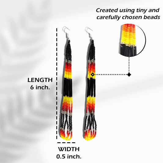 SALE 50% OFF - Black Fire Color Long Pattern Beaded Handmade Earrings For Women