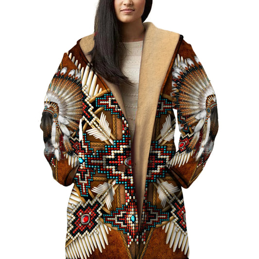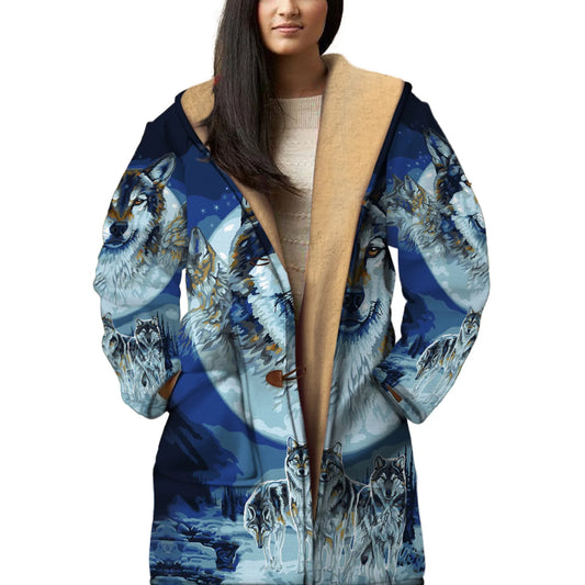 Native American Wolfs Snow Horn Button Long Fleece Windbreaker NBD