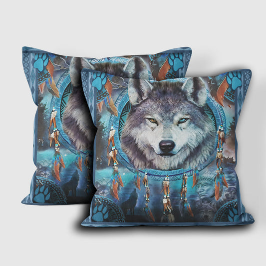 Brown Wolf DreamCatcher Native American Pillow Cover WCS