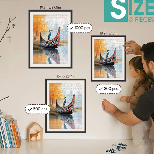 The Blue Heron & Autumn – Wooden Jigsaw Puzzle (300 / 500 / 1000 Pieces)
