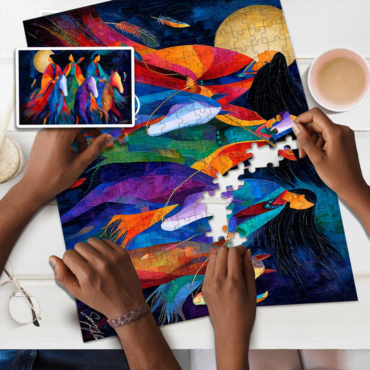 Riders Beneath the Moon – Wooden Jigsaw Puzzle (300 / 500 / 1000 Pieces)