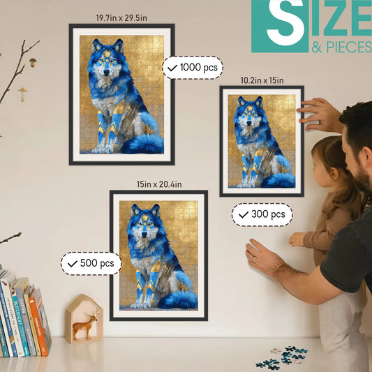 The Moon - Gold Wolf Spirit – Wooden Jigsaw Puzzle (300 / 500 / 1000 Pieces)