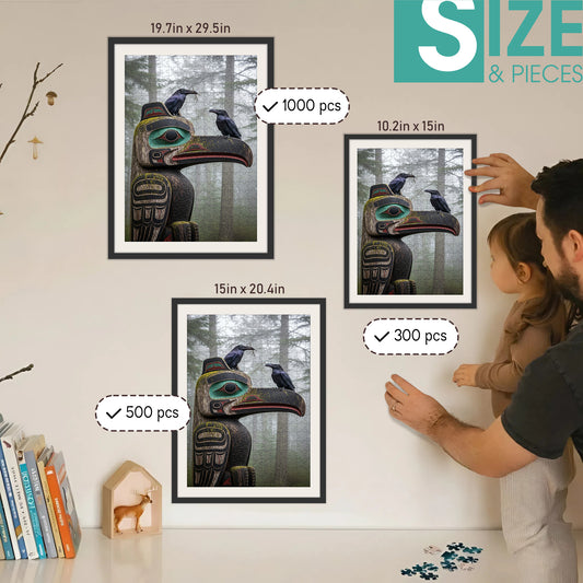 Ravens on the Totem – Wooden Jigsaw Puzzle (300 / 500 / 1000 Pieces)