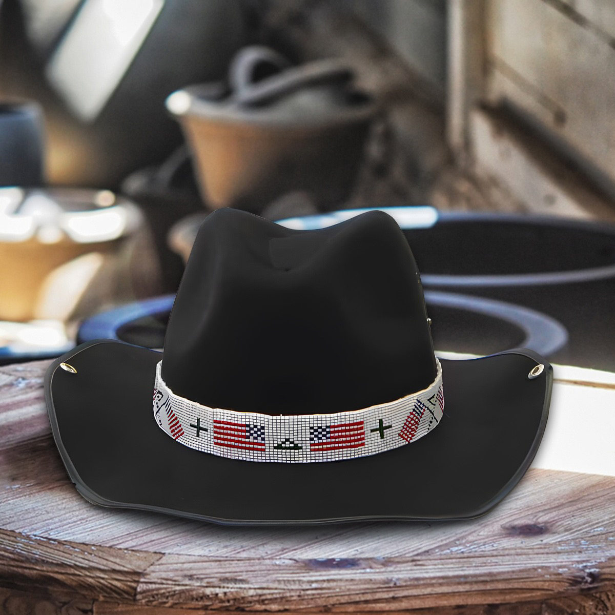 The intricate beadwork captures the essence of Native American symbolism, telling stories of unity, spirituality, and connection to the land. Each bead is thoughtfully threaded, allowing the patterns to come alive with a vibrant fusion of colors and intricate details. This Beaded Hatband isn't just an accessory; it's a representation of the legacy passed down through generations.