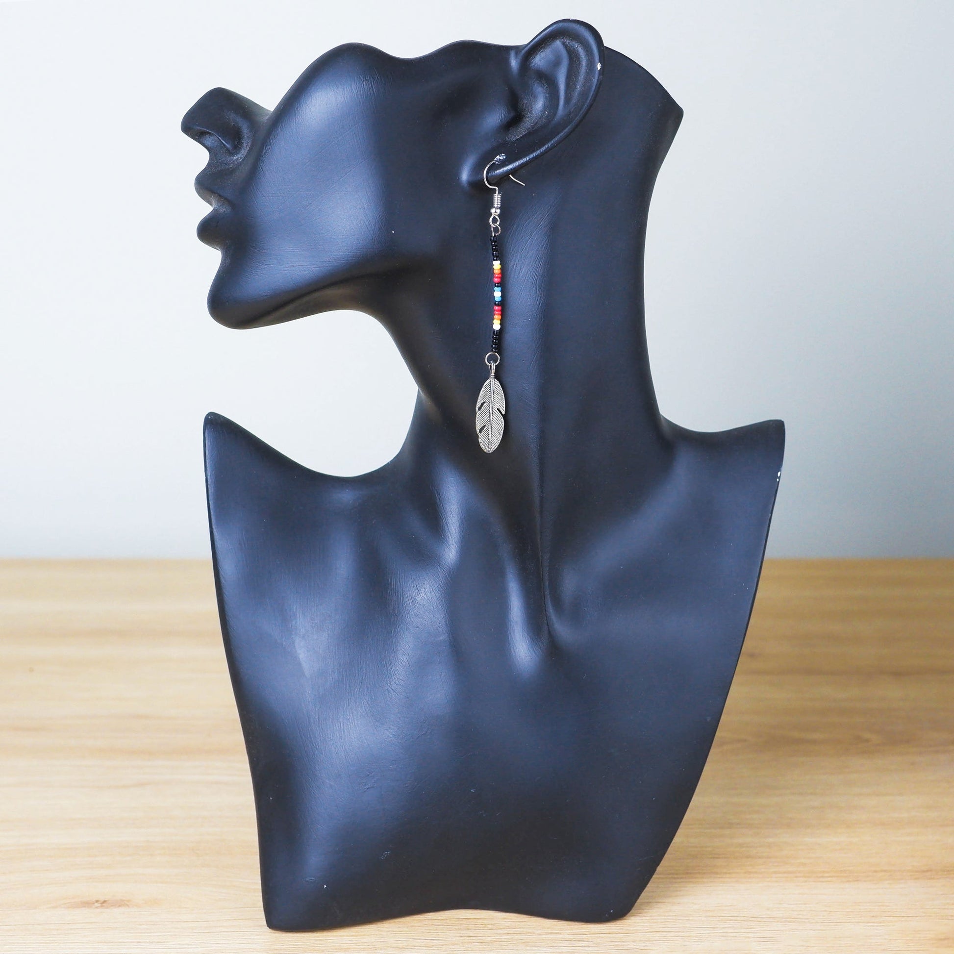 SALE 50% OFF - Black Stick with Metal Feather Beaded Handmade Earrings For Women