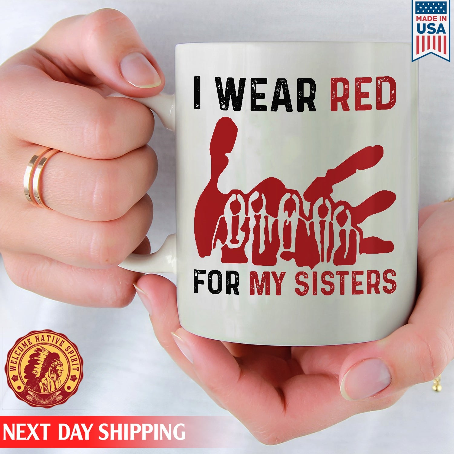 I Wear Red For My Sister, No More Stolen Sisters Ceramic Coffee Mug