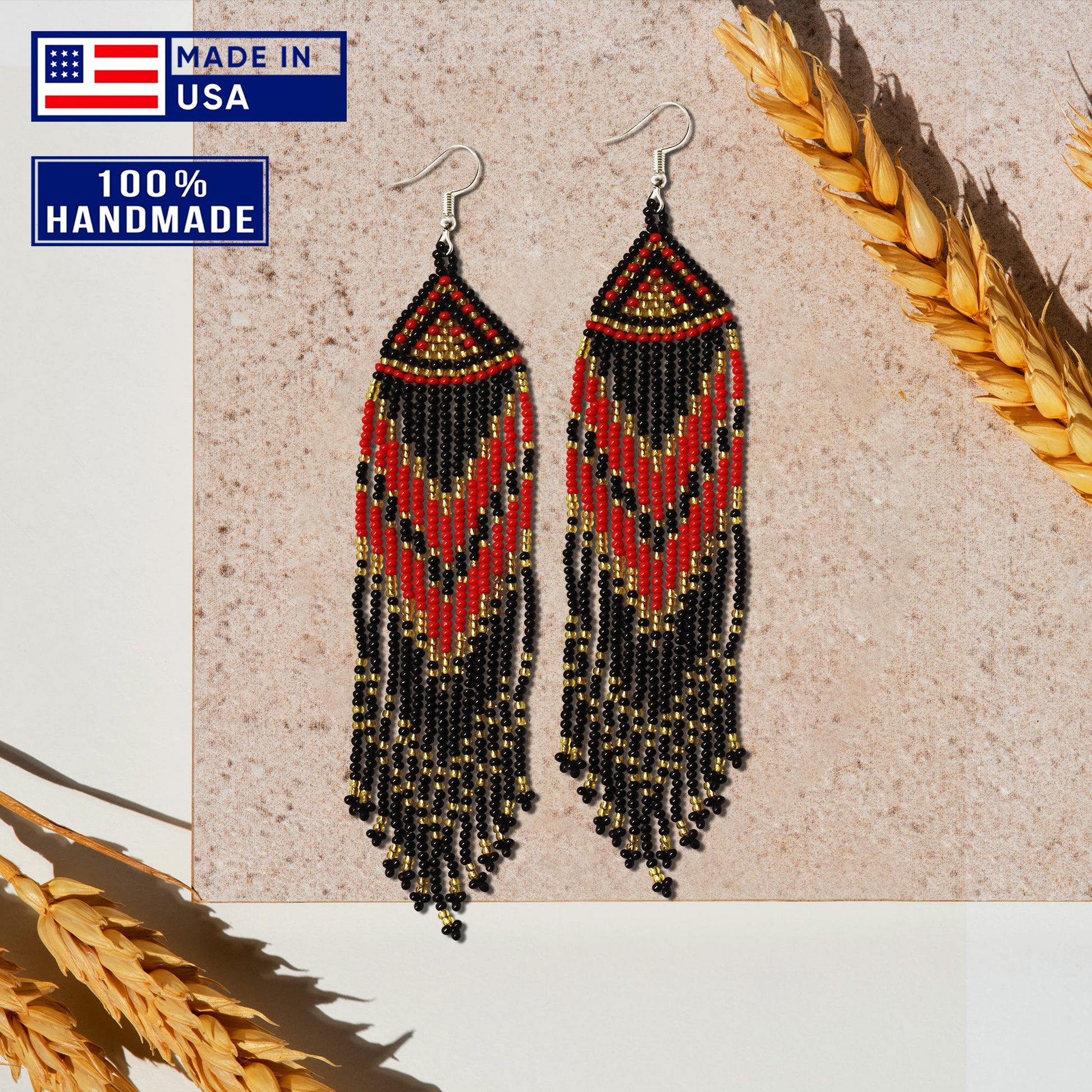 SALE 50% OFF - Red Black Long Beaded Handmade Earrings For Women