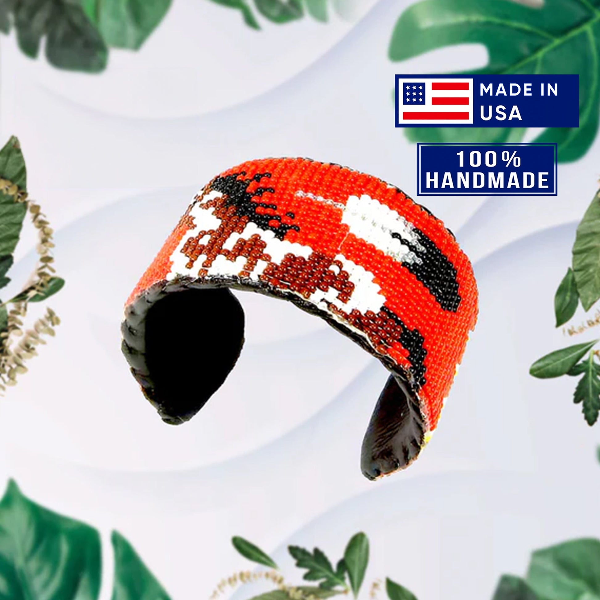 SALE 50% OFF - Red Brown Horse Cuff Beaded Handmade Bracelet