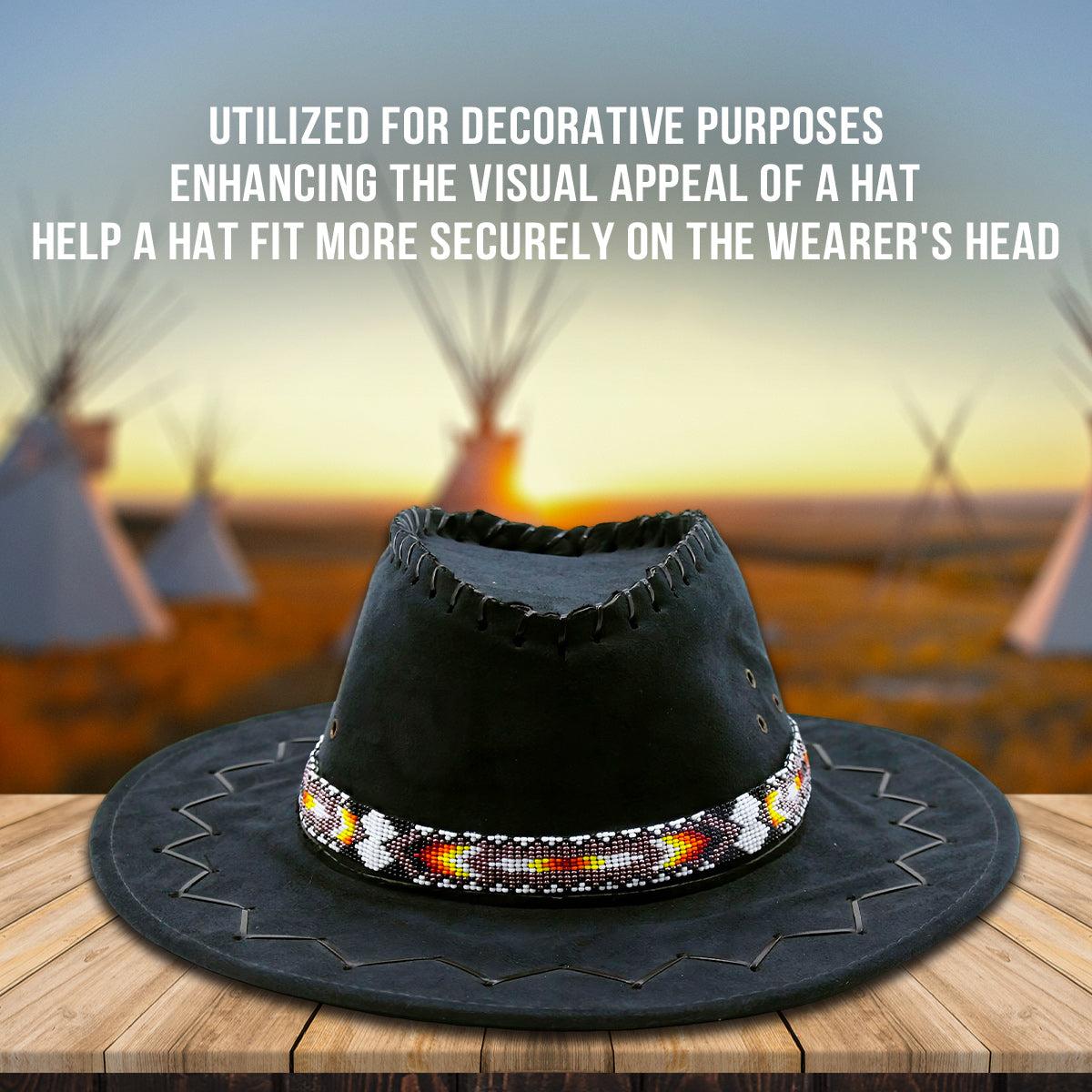 With its carefully curated design, this hatband is a conversation starter. It's an opportunity to share the beauty of Indigenous traditions and their enduring impact on contemporary aesthetics. By choosing this accessory, you're celebrating the timeless artistry while supporting the continuation of cultural expression.