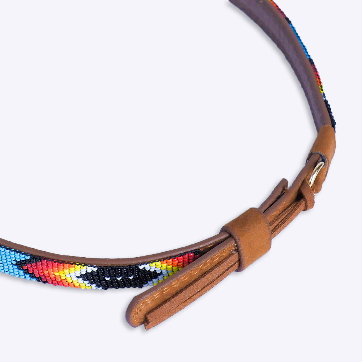 A beaded hatband encircles the crown, introducing a touch of elegance and craftsmanship. The vibrant beads pay tribute to tribal artistry, while the modern silhouette ensures this accessory transcends time.