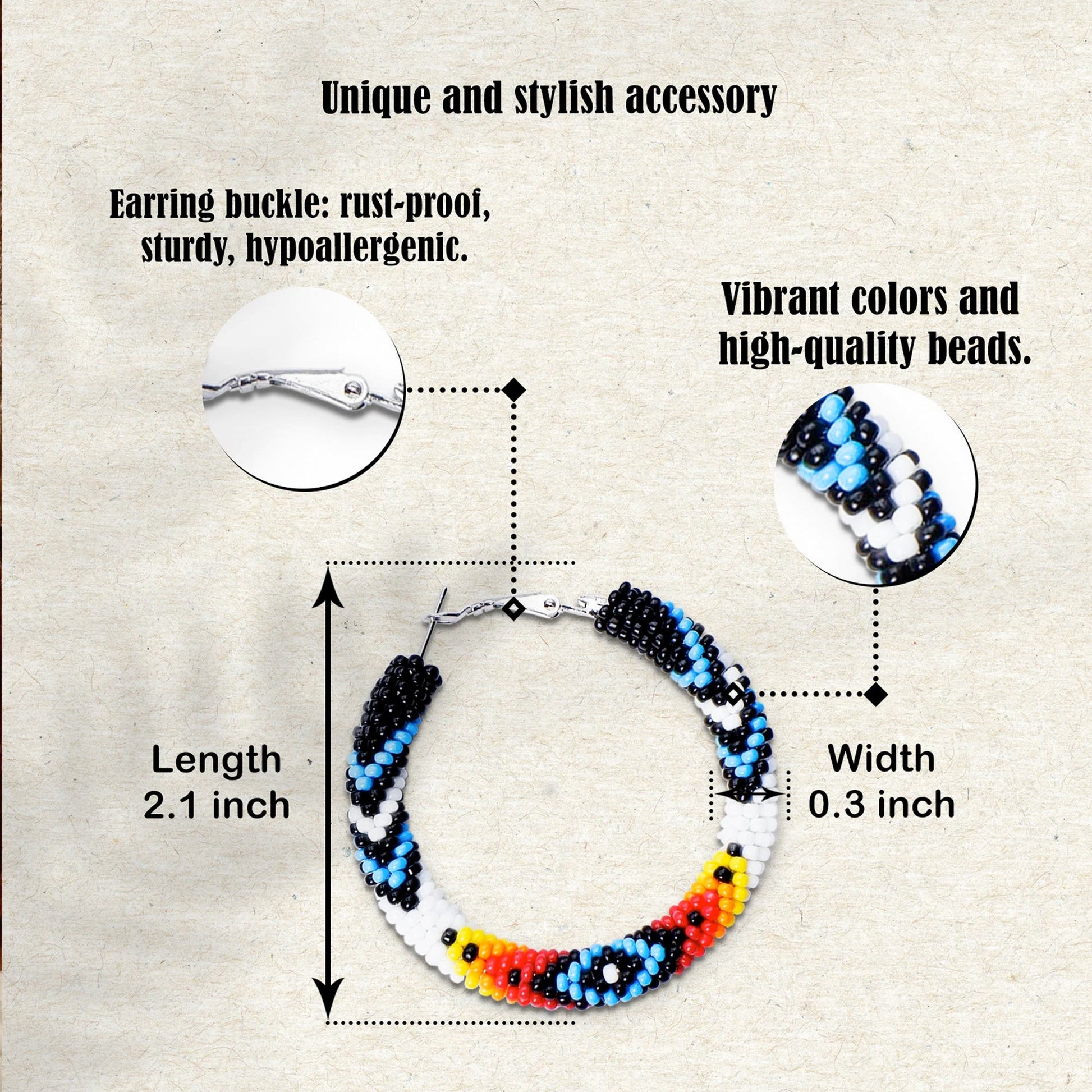 As you wear these earrings, you're not only adorning yourself with a piece of exquisite jewelry but also carrying a piece of history and cultural pride. The rhythmic swaying of the beaded hoops mirrors the rhythms of life, connecting you to the land, the sky, and the spirit of the indigenous peoples.