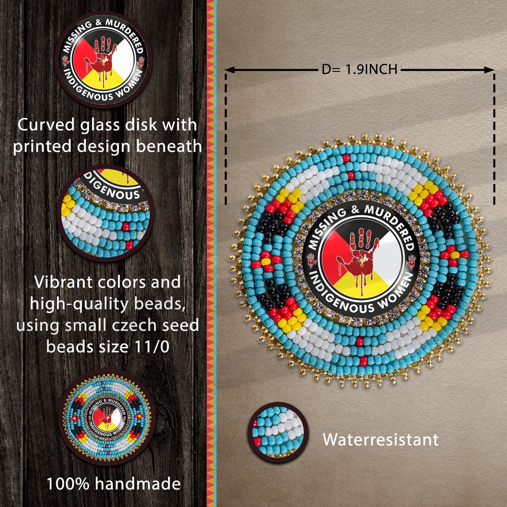 SALE 50% OFF - MMIW Feathers Handmade Glass Beaded Patch Necklace Pendant