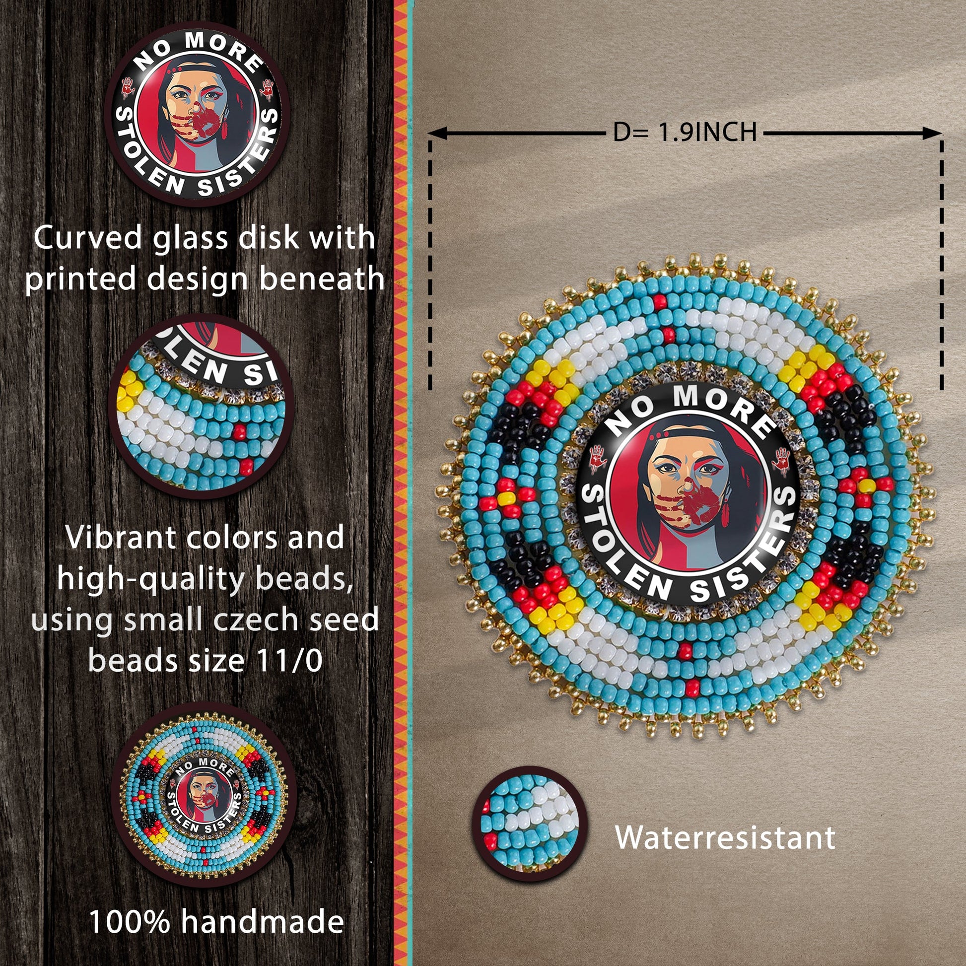 SALE 50% OFF - No More Stolen Sister Feathers Handmade Glass Beaded Patch Necklace Pendant