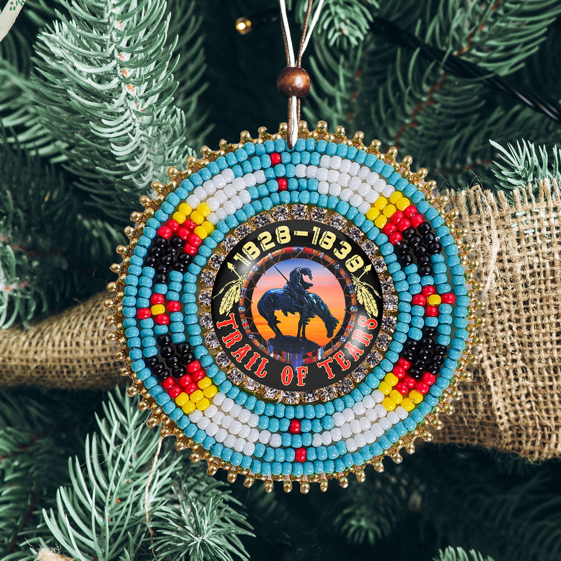 In the heart of this artful creation lies a captivating fusion of two distinct elements, seamlessly intertwined to form a symbol of Native American heritage and innovation. The beaded patch, in harmony with a round mirror, reflects a cultural narrative that celebrates both tradition and modernity.
