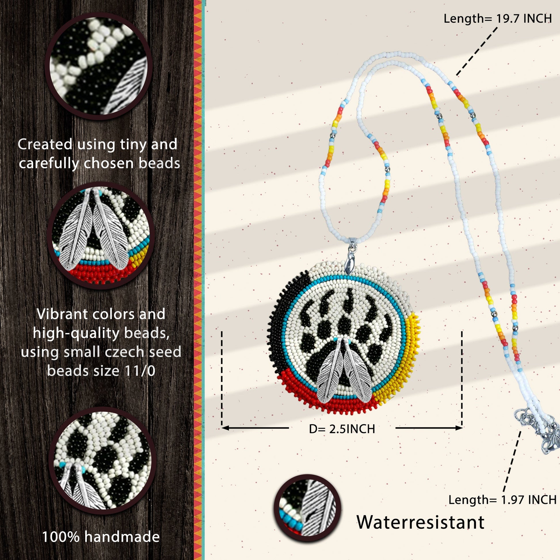 SALE 50% OFF - Bear Paw Handmade Beaded Wire Necklace Pendant Unisex With Native American Style
