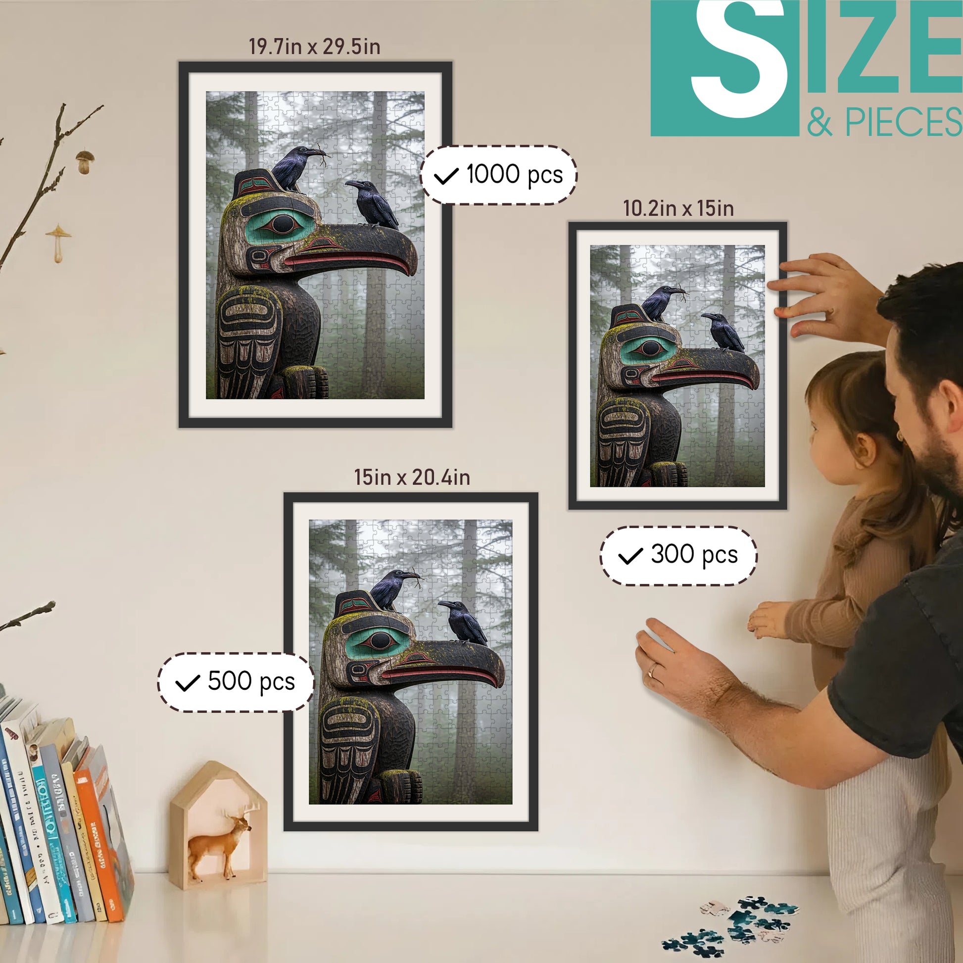 Ravens on the Totem – Wooden Jigsaw Puzzle (300 / 500 / 1000 Pieces)