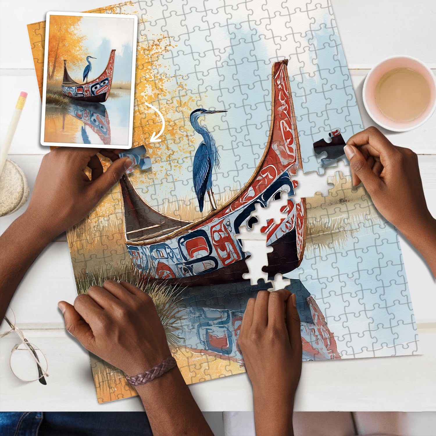 The Blue Heron & Autumn – Wooden Jigsaw Puzzle (300 / 500 / 1000 Pieces)