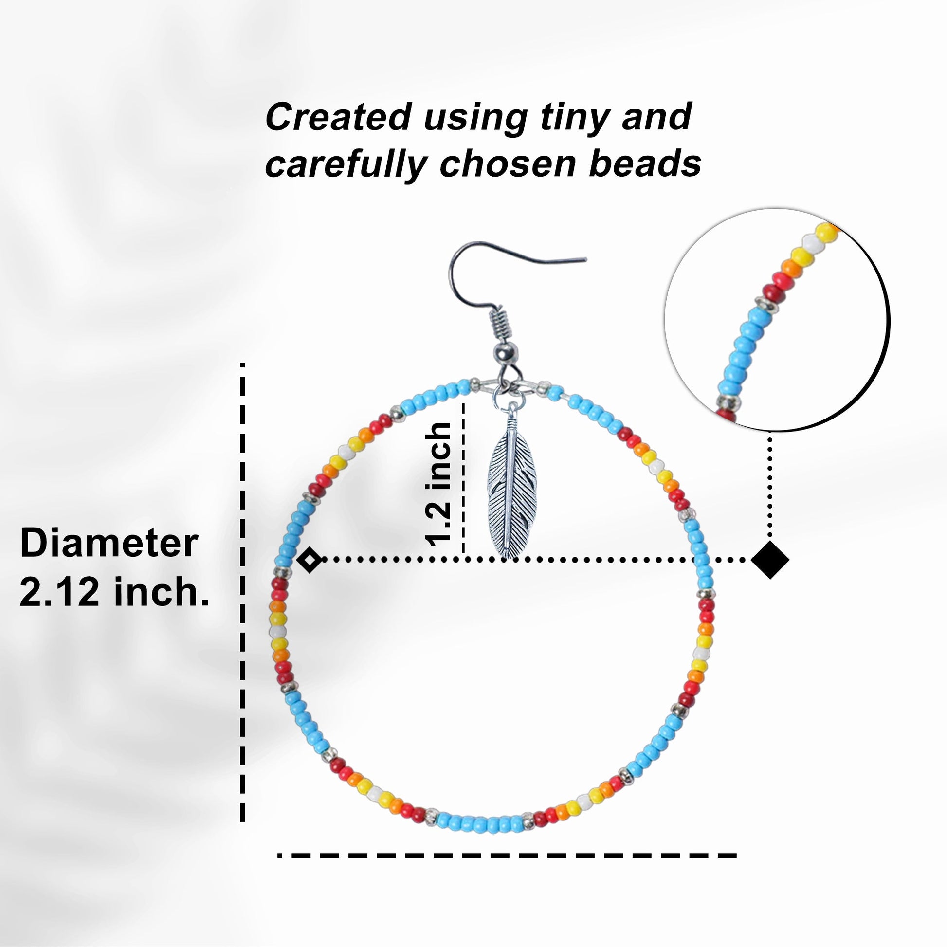 SALE 50% OFF - Turquoise Round Pattern Beaded Handmade Hoop Earrings For Women